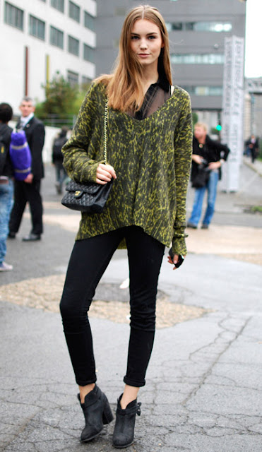 Aunque reconozco que me identifico a la perfección con el estilo de la chica de la foto de arriba, casual pero a la vez sofisticada por el blazer negro, collar y bolso de mano de piel negro.