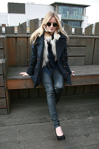 Prefiero darle el 5estrellas a esta chica, por ir con dos «must» de esta temporada; el abrigo de piel precioso y con el toque que sofistica que es el cinturón en la cintura y los botines altos con hebilla y pelito por dentro.