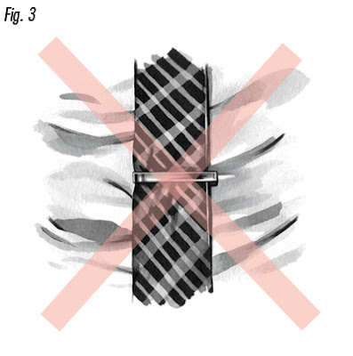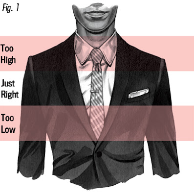 La punta de la corbata no debe colgar debajo de la cintura de sus pantalones. Y el nudo no debe ser demasiado apretado en consideración con el ancho y línea de la corbata.