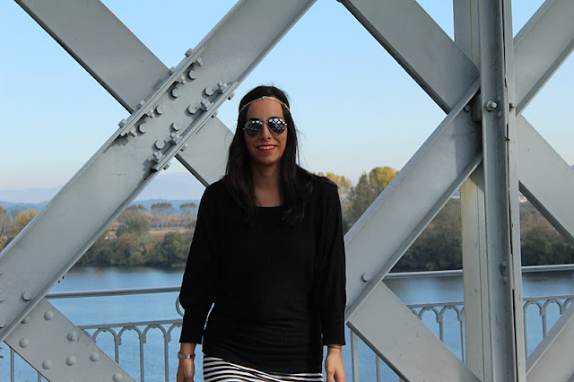 me gustan las rayas siempre y esta tendencia de rayas »mas veraniegas» en otoño e gusta muchoo la falda es chulisima y el tocado me parece muy original