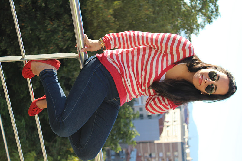 Me gusta mucho el look! El toque marinero en rojo me encanta. Bss
