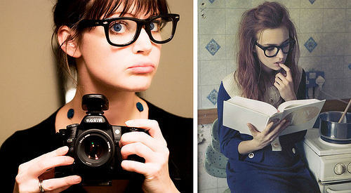 Este nueva moda de gafas que se caracteriza por ser grandes, y de pasta negra, aunque… hay excepciones en colores y formas más originales que llaman más la atención para bien o para mal, según se mire… ha ha ha!, vienen fuerte y para quedarse un buen tiempo (reconozco que pensé que la moda no iba a durar mucho)