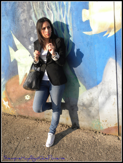 Qué blazer tan bonito! Tiene un corte perfecto! Creo que lo tiene mi madre clavado de Zara 🙂 Es un básico en toda regla 🙂 Además el toque con las converse queda bien 🙂