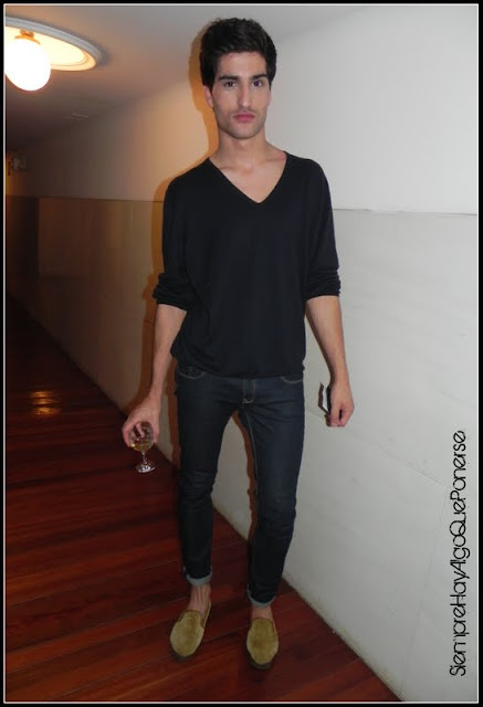 Uno de los modelos que participó en el desfile. Iba básico pero muy trendy, con cuello escotado de pico, pitillos remangados y mocasines de ante.