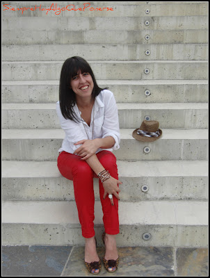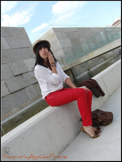 me encanta el look!! y la mezcla de los pantalones rojos con el toque de leopardo en los zapatos genial!!