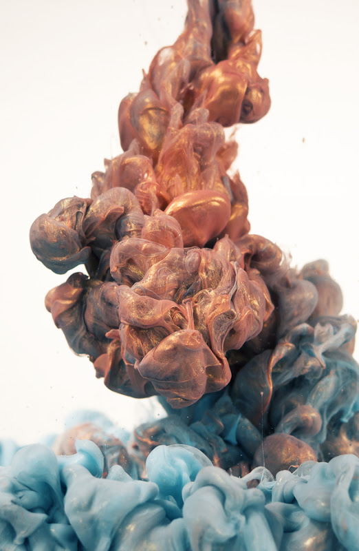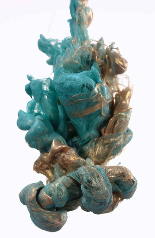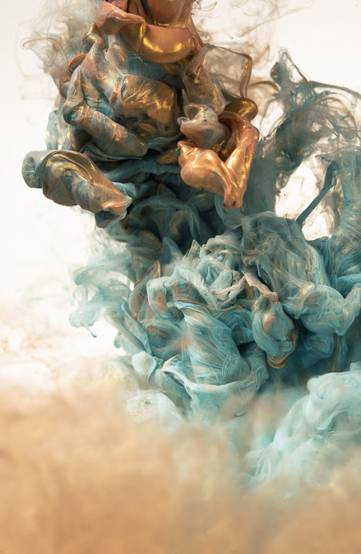 Os presento la obra de Alberto Seveso un fotógrafo italiano que tuvo la genialidad de mezclar tinta de colores con virutas de oro, sumergirlas en agua y fotografiar a alta velocidad las nebulosas que se crean.