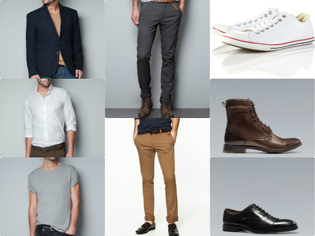 Olvidaros de los estampados extravagantes y enfocaros en que no os falten unos buenos básicos. Como camisetas gris y blanca, un polo, camisas de cuello oxford blanca y azul, unos chino kaki, una blazer azul marino, un traje griso negro, unos buenos vaqueros, unos zapatos de vestir negros, unas botas clásicas y unos tenis o zapatos más casual.