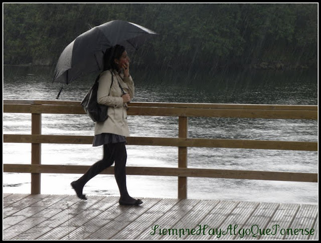 Dios mío, eso sí que es llover. Precioso trench, yo ante esa lluvia, lo siento, sólo Hunter 🙂