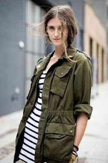 Una parka puede ser pieza clave para looks casual y desenfadados, las posibles combinaciones son infinitas. Si no te atreves con parka larga o quieres que la chaqueta aporte un toque más cool decántate mejor por una tipo sahariana en verde militar.
