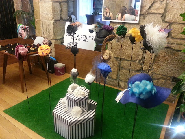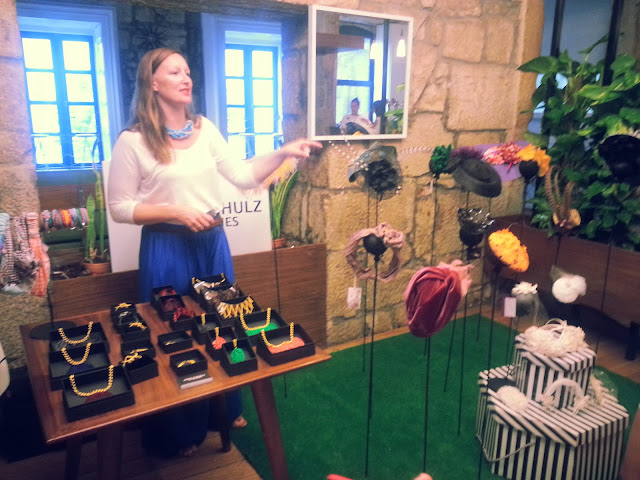 Janet Schulz conocida por ser la creadora de la famosa pulsera de la Eurocopa. Nos mostró sus diseños; collares, pulseras y una maravillosa colección de tocados. Todos los tocados con los que salimos en las fotos son suyos.