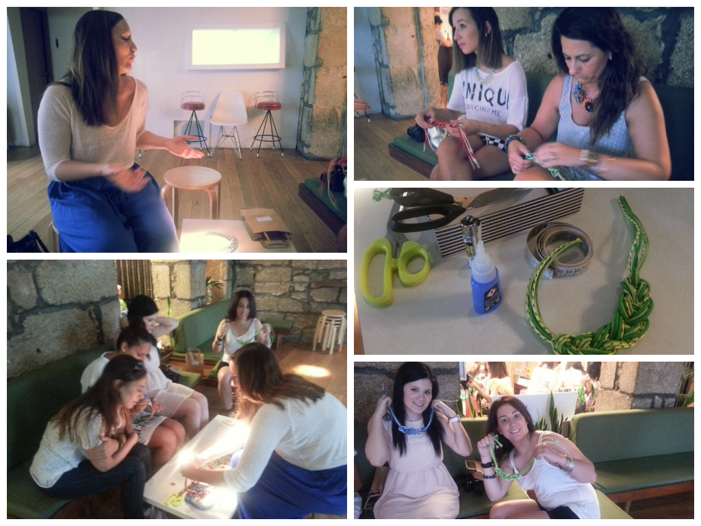 Dimos rienda suelta a nuestra imaginación decorando galletas de chocolate blanco en forma de prendas, tuvimos una clase de DIY sobre cómo realizar un collar de cabos anudados y pudimos probarnos todos los tocados y accesorios que nos gustaban.