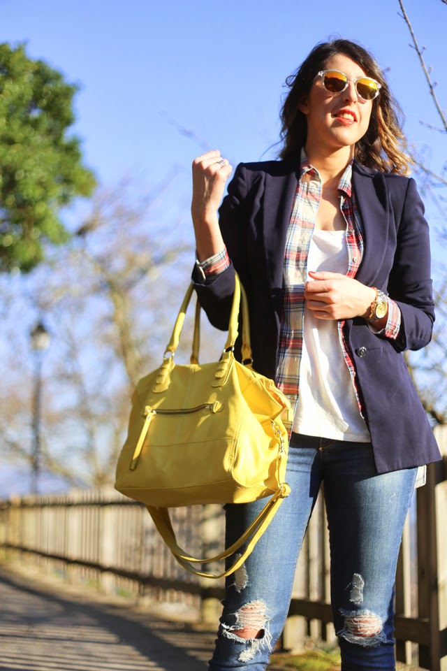 ¡Hola chicos! Espero que esteis teniendo una buena semana, la nuestra esta siendo un no parar. Tenemos muchas novedades y todas buenas!! Mucho que contar pero sobre todo mucho que agradecer, porque sin vosotros nada de esto pasaría, así queMIL GRACIAS por seguir cada entrada, por acompañarnos en las redes sociales, por cada mensaje de apoyo. Gracias por valorar lo que hacemos. Y me dejo de sentimentalismos que toca enseñaros nuevo look. Mi camisa de cuadros favorita abierta para dar un toque más casual al look, los jeans rotos que no me saco últimamente, el bolso amarillo rompiendo la armonía de los colores y las fotos sacadas en el Castillo de Villasobroso, mi pueblo natal.
