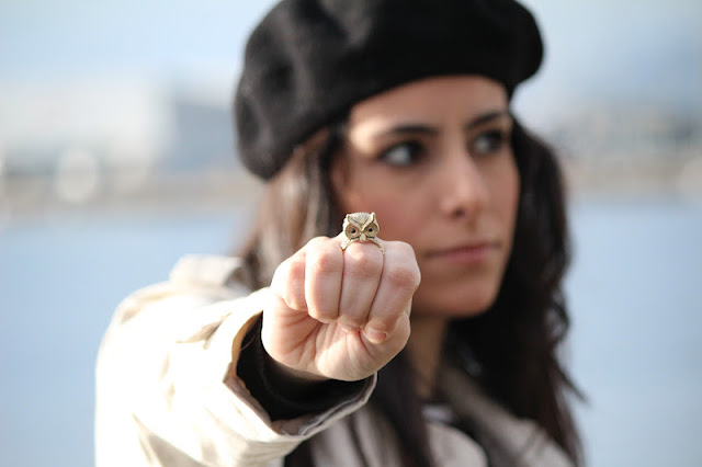 Que guapa, aquí hace también frío aunque asome el sol. Me encanta el anillo de Búho *-*