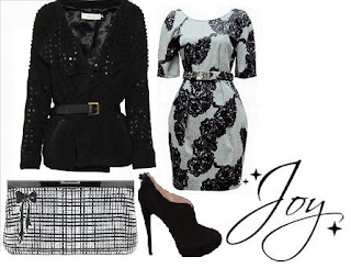 Y el segundo para noche, PRECIOSO ¿verdad?, yo también le pondría medias tupidas y tacones negros, aunque da juego para muchas otras combinaciones.